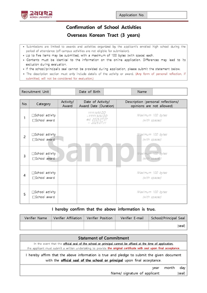 - ④ 기타활동(상기 서류 외 고등학교 재학기간 중 의미 있다고 생각하는 활동)고등학교 학교생활기록부에 준하는 활동