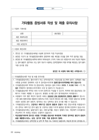 자율활동, 동아리, 수상 및 교외 경시대회, 수상실적 제출 가능