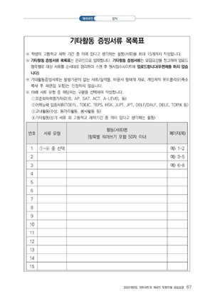 0-12학년 3년동안 교내외 비교과실적 매수 제한 없음